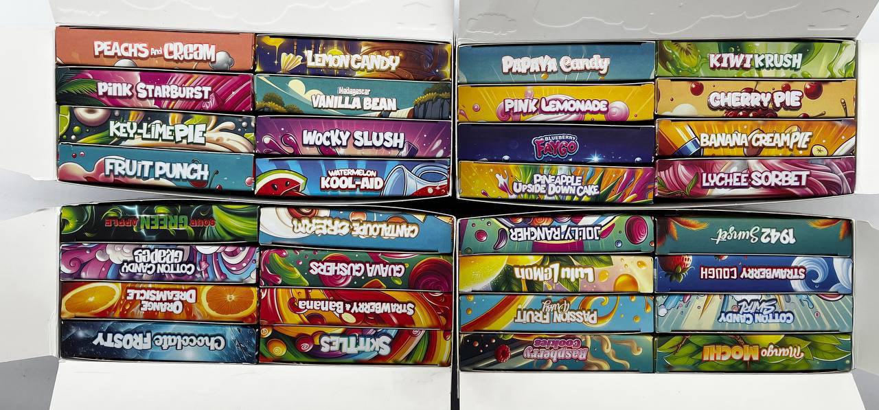 | Genetics | Gelato 41 × Zkittles | Not disclosed | Not disclosed | Gellati × Kush Mints | Zkittles × Kush Mints | Zkittles × Gelato | Sunset Sherbet × Thin Mint Cookies |